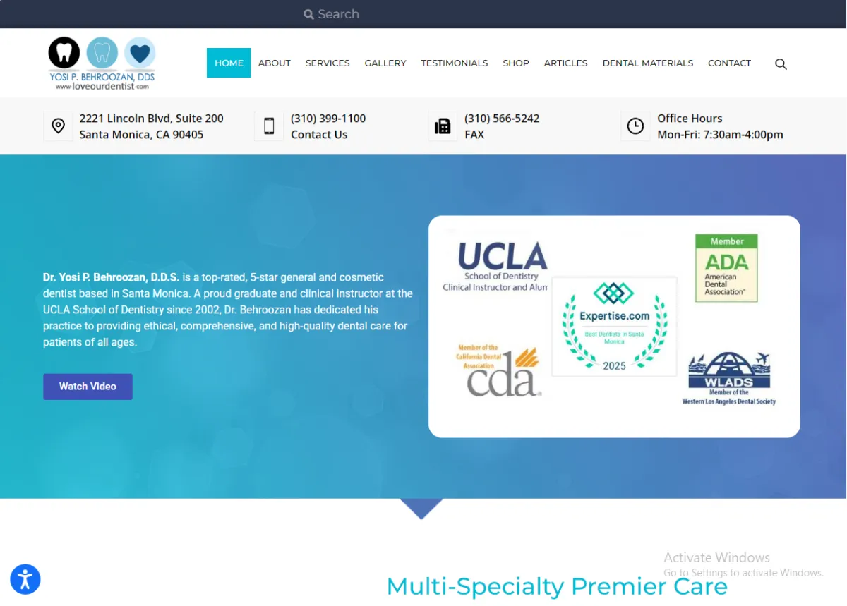 We built a professional, patient-focused website for Dr. Yosi P. Behroozan, DDS ("Love Our Dentist") in Santa Monica, CA, promoting his top-rated general, cosmetic, and multi-specialty dental practice.